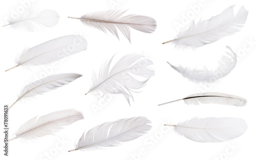 © Alexander Potapov, Naklejka premium set of eleven light grey feathers isolated on white