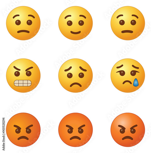 © Miry Haval, Fototapeta premium Set of emoticons, emoji isolated on white background, vector illustration.