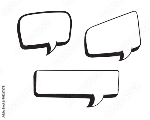 © Hand Drawn Icon, Naklejka premium Set of empty comic speech bubbles Hand drawn doodle cartoon stickers. Vector illustration.