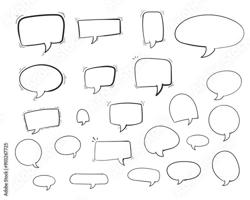 © Hand Drawn Icon, Fototapeta premium Set of empty comic speech bubbles Hand drawn doodle cartoon stickers. Vector illustration.