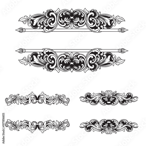 © strawpao, Fototapeta premium set of engraving ornament frame elements for design