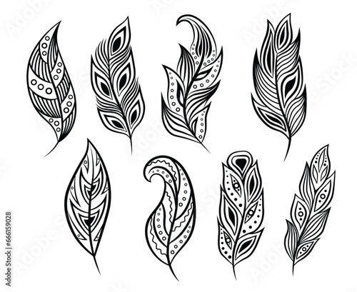 Fototapeta premium Set of ethnic feathers. Vintage Feather collection. Vector illustration