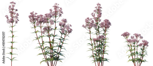 © Viktoria, Naklejka premium Set of Eupatorium purpureum (commonly known as purple Joe-Pye weed or sweetscented joe pye weed) flowering frontal isolated png on a transparent background perfectly cutout high resolution