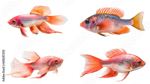 © Monika, Naklejka premium Set of exotic fish isolated on the transparent background PNG. AI generative.