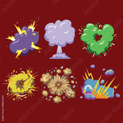 © Anjas, Fototapeta premium Set of explosions and explosions. Vector illustration in a flat style.