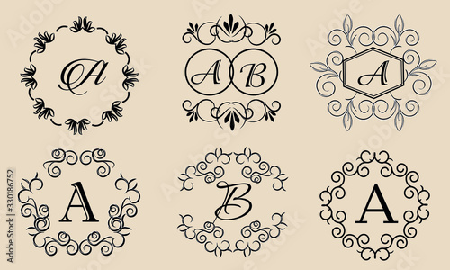 © Ігор Шунькін, Fototapeta premium Set of exquisite floral monograms. Template for business logo, restaurant, royalty, boutique, cafe, hotel.