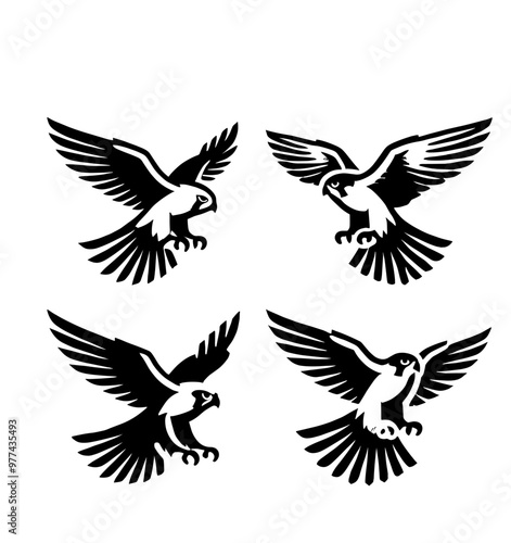 © Niken, Fototapeta premium set of falcon illustration graphic design black and white vector clip art silhouette