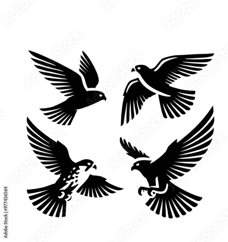 © Niken, Fototapeta premium set of falcon illustration graphic design black and white vector clip art silhouette