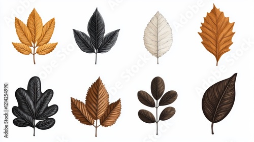 Fototapeta premium Set of fall leaves hand-drawn style variety of shapes and autumn shades perfect for seasonal and natural concepts