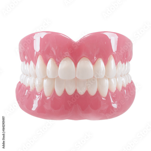 Obraz premium Set of false teeth in pink gum base. Isolated white background. Png format