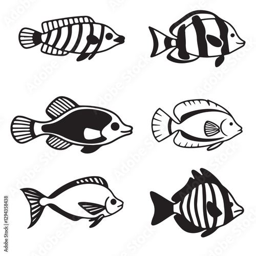 © Md, Naklejka premium set of fish Mackerel fishes silhouette black vector art illustration