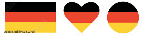 Naklejka premium Set of Flag of Germany, heart shape of Germans flag, and circle shape of...