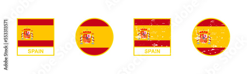 © Narek, Obraz premium Set of flag of Spain in square and round shape isolated on white background. vector illustration