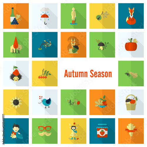 Naklejka premium Set of Flat Autumn Icons