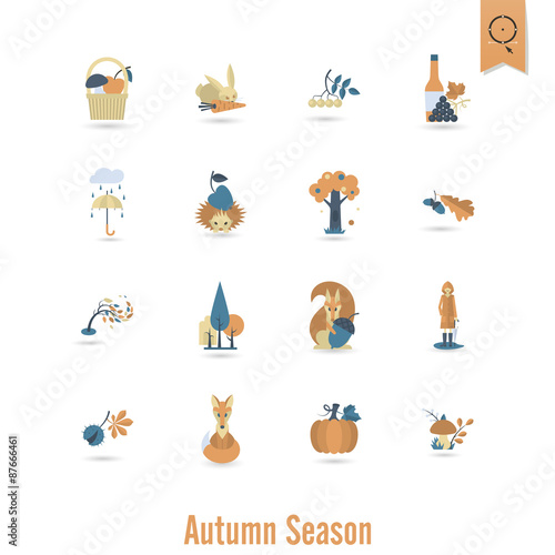 © helenstock, Fototapeta premium Set of Flat Autumn Icons