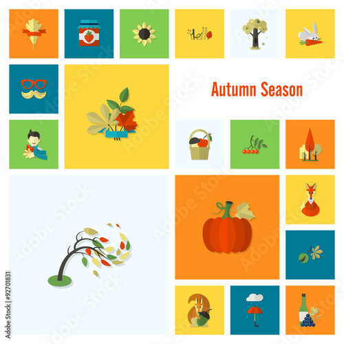 Fototapeta premium Set of Flat Autumn Icons