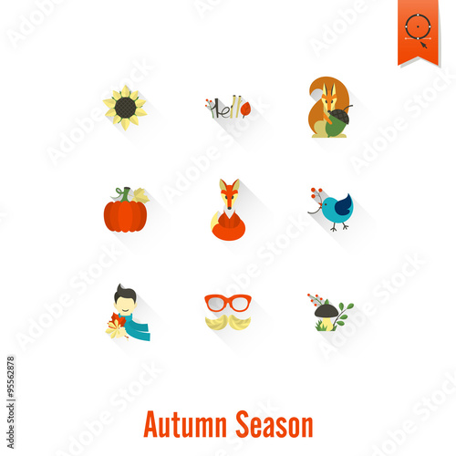 Fototapeta premium Set of Flat Autumn Icons
