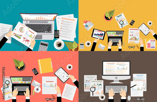 © mitay20, Naklejka premium Set of flat design illustration concepts for business, finance, team work, consulting, management, anaysis, career, employment agency, staff training,money, technology,startup,creative.