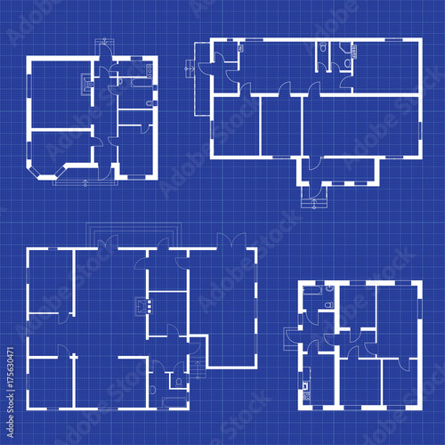 Fototapeta premium Set of floor plans blueprints. Vector unfurnished ground floor plans for your...