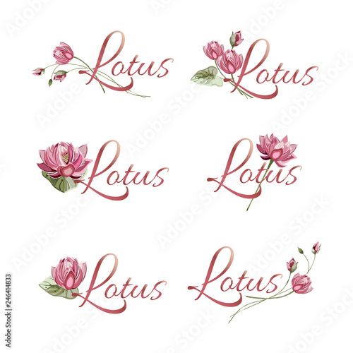 © tanyalmera, Naklejka premium Set of floral bouquets with pink lotus.Logo, template,brand