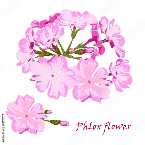 Naklejka premium Set of flowers pink phlox in realistic hand-drawn style.