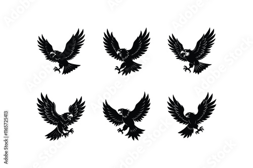 © Srabonti, Obraz premium "Set of Flying Angry Eagle Vector Illustration"