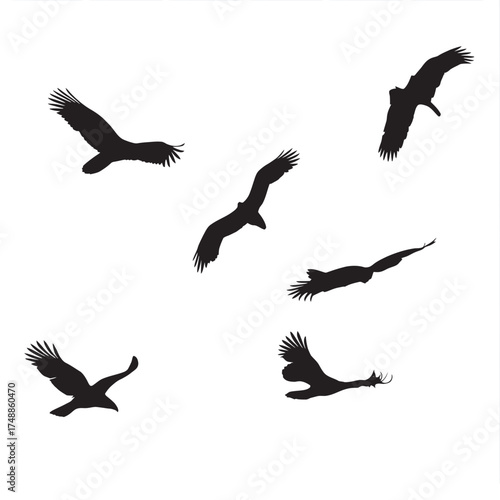 © Md Abu Foisal, Obraz premium Set of Flying Bird Silhouettes in Black Vector Design