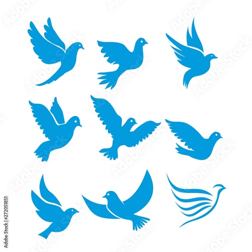 © credon2012, Fototapeta premium Set of flying birds sign isolated on white.