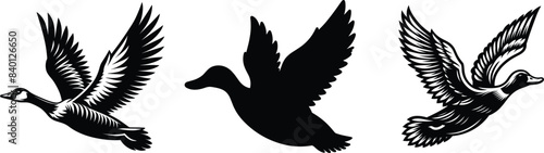 © Design Musketeer, Naklejka premium Set of flying wild duck, vector illustration.