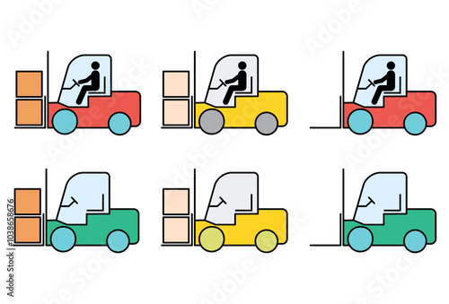 Fototapeta premium Set of Forklift transport icon, industry vehicle machine symbol, fork truck warehouse vector illustration