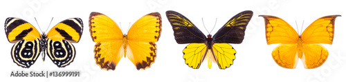 © Acronym, Fototapeta premium Set of four beautiful colorful butterflies isolated on white.