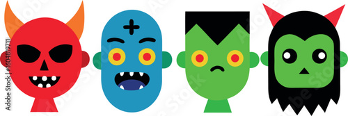 Fototapeta premium Set of Four Cartoon Hallow Designs Spooky Cute Halloween Illustrations