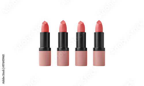 © era, Obraz premium Set of Four Coral Pink Lipsticks in Sleek Black and Nude Packaging isolated on transparent background
