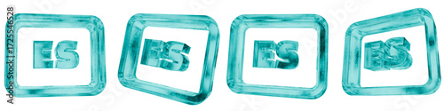 Fototapeta premium Set of four 3D spanish language code shapes in frosted blue ice glass style,...