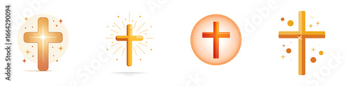 Fototapeta premium Set of Four Golden Christian Cross Illustrations on White Background