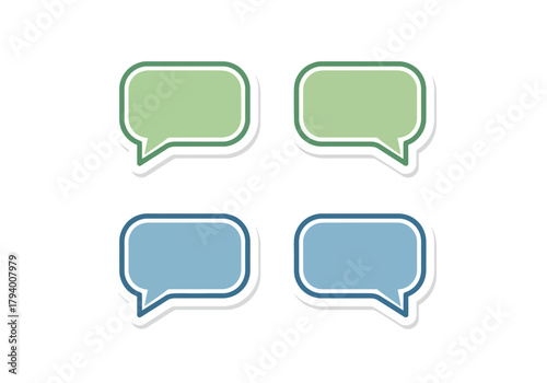 Fototapeta premium Set of four green and blue rectangular speech bubble stickers with rounded...