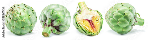 © volff, Obraz premium Set of four green artichokes isolated on white background.