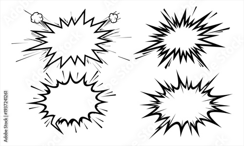 Obraz premium Set of four hand-drawn comic explosion speech bubbles.