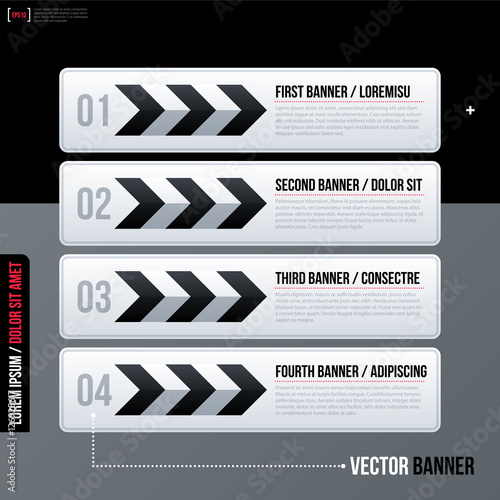 Obraz premium Set of four horizontal web banners on gray background. Modern business...