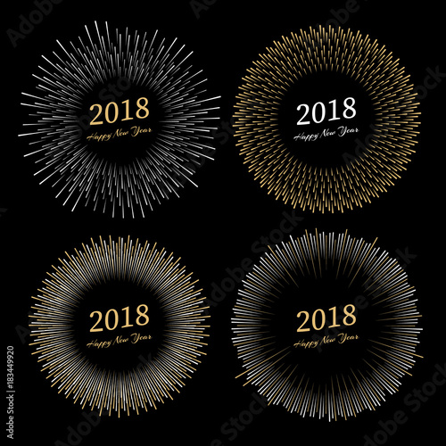 Fototapeta premium Set of four inscription Happy New Year 2018 with firework around. New Year and Xmas Design Element Template. Vector Illustration.