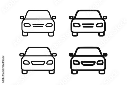© Precious, Fototapeta premium Set of four minimalist car icons in front view, simple line art design