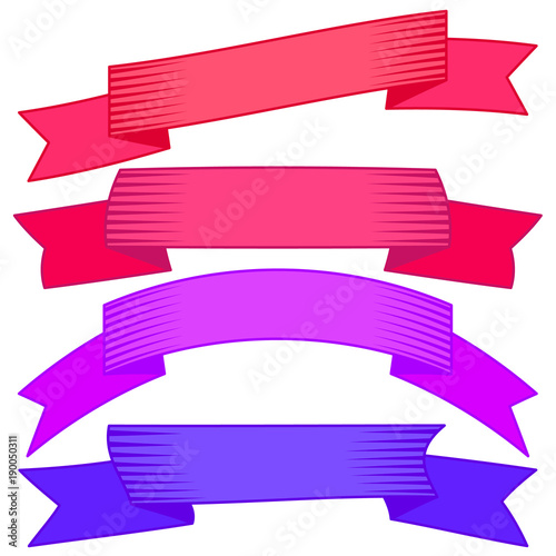 © dniprodd, Obraz premium Set of four multicolor ribbons and banners for web design. Great design element isolated on white background. Vector illustration.