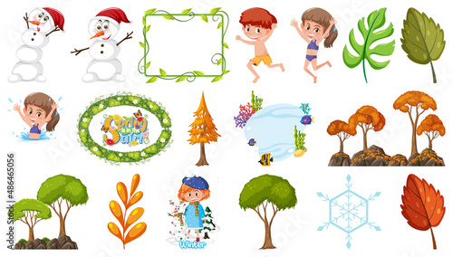 © brgfx, Fototapeta premium Set of four seasons trees and nature objects