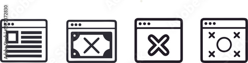 Obraz premium Set of four stylized icons representing web browser windows with different...