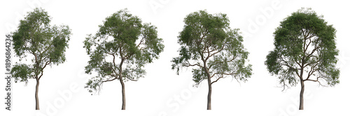© JOBYEDHOSSION, Fototapeta premium Set of Four Tall Green Deciduous Trees with Dense Foliage, Isolated on White Background for Landscape Design