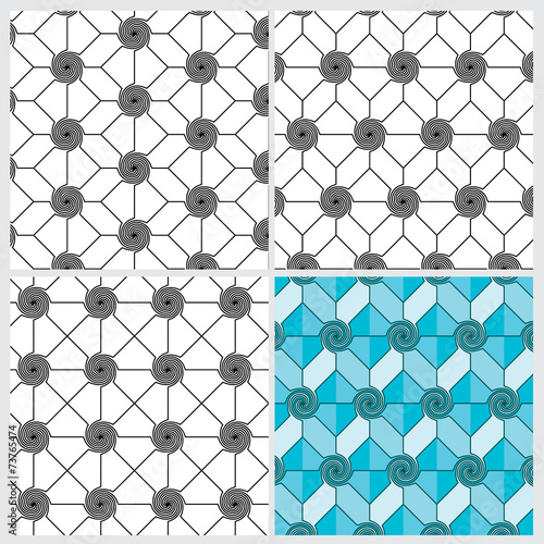 © jiaking1, Fototapeta premium Set of four twirl line pattern