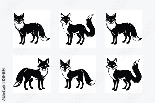 © JAKIRUL ISLAM, Fototapeta premium set of fox silhouettes