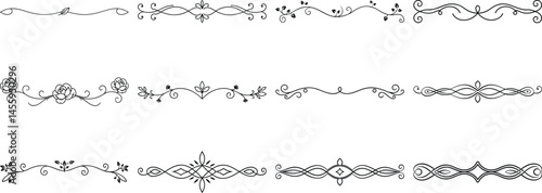 © MdMohiuddin, Obraz premium Set of Frame borders and text dividers, monochrome vectors collection