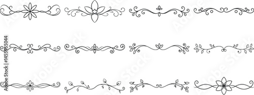 © MdMohiuddin, Obraz premium Set of Frame borders and text dividers, monochrome vectors collection