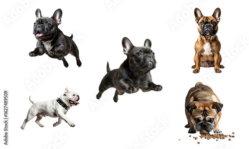 © PNG SET GUY, Fototapeta premium Set of french bulldog side view isolated on transparent background
